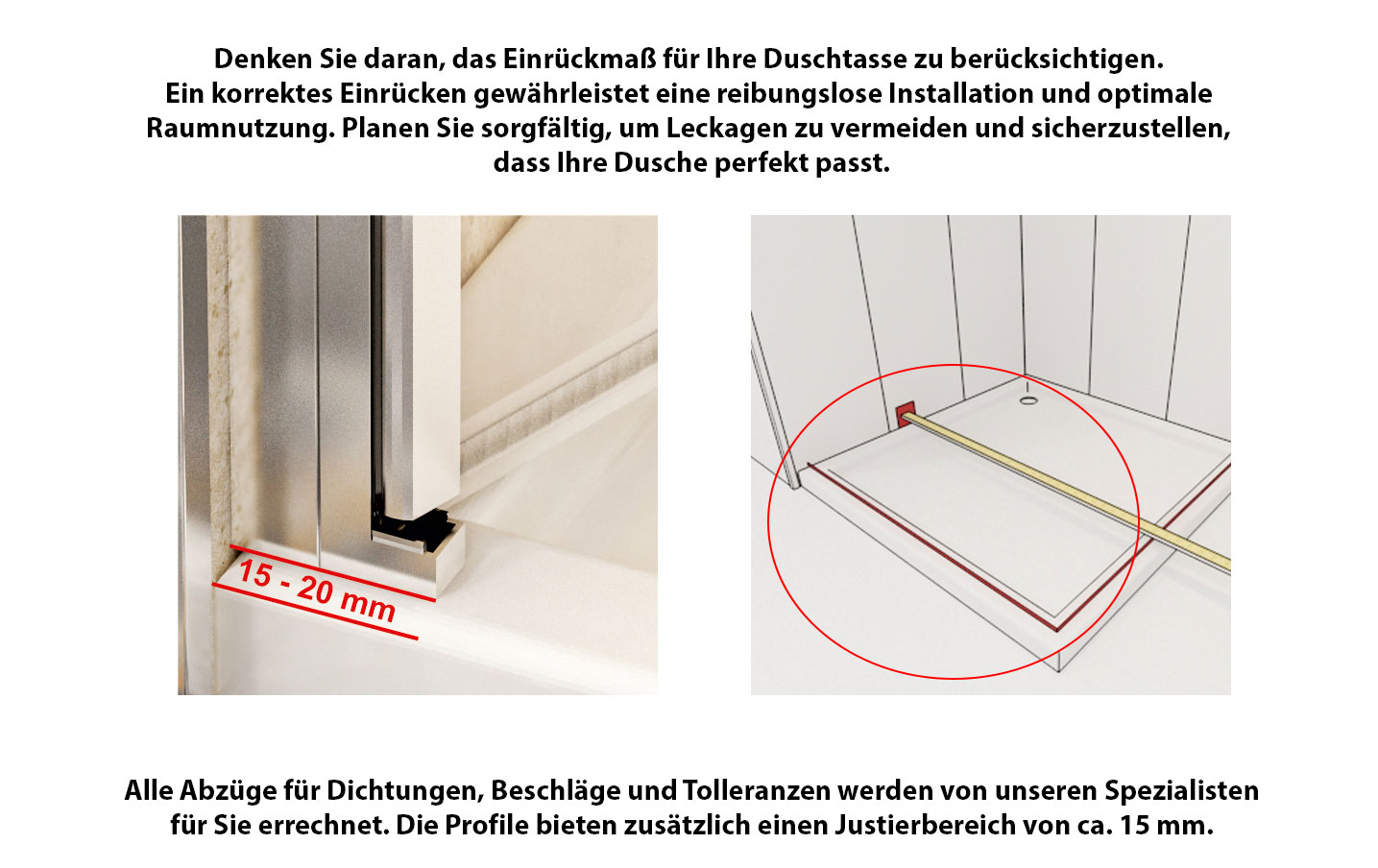 Wir verstehen Ihre Bedenken und sind hier, um sicherzustellen, dass das Ausmessen Ihrer Dusche ein einfacher und erfolgreicher Schritt auf dem Weg zu Ihrer Traumdusche ist.
