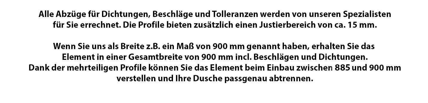 Unsere Experten fertigen Duschabtrennungen nach Ihren genauen Maßen und bieten sogar Sonderzuschnitte an, um perfekt in Ihre einzigartige Duschkabine zu passen.