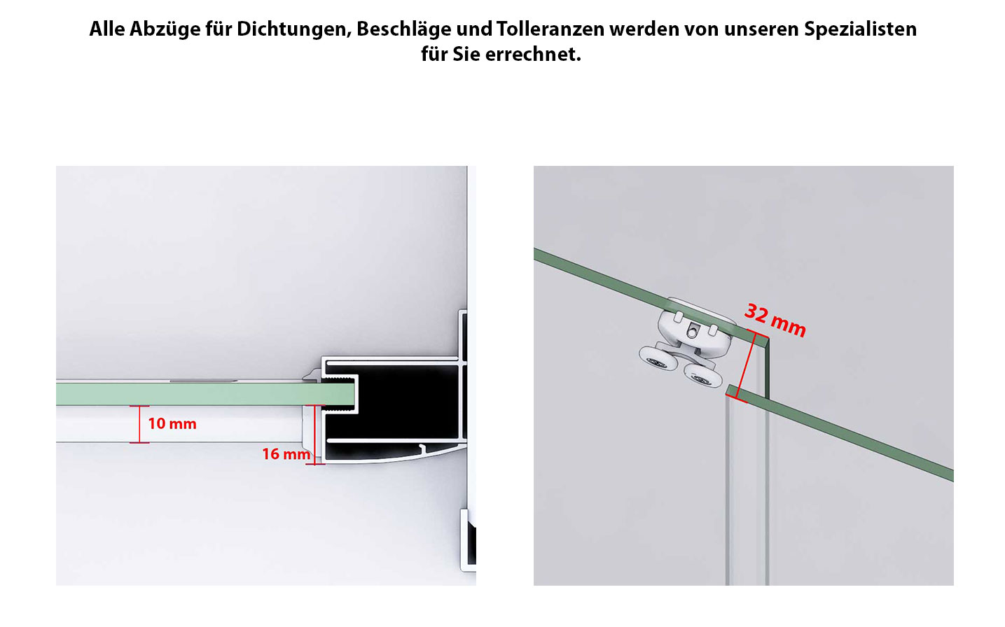 Unsere Experten haben jahrelange Erfahrung im Umgang mit Maßanfertigungen und werden sicherstellen, dass alles perfekt passt. Mit präzisen Anleitungen und Unterstützung bei jedem Schritt werden wir sicherstellen, dass Ihre Duschabtrennung perfekt zu Ihrem Raum passt.