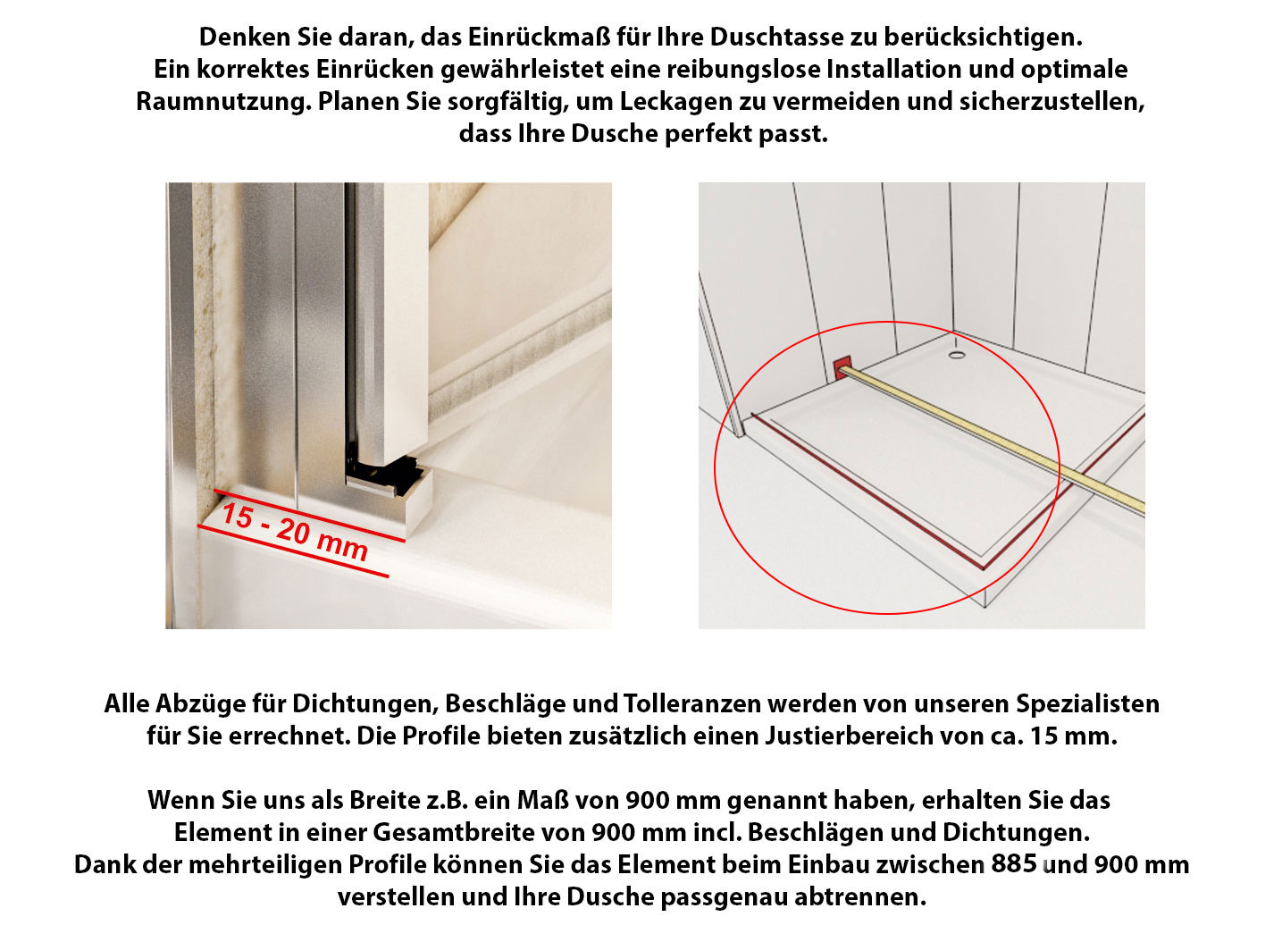 Wir verstehen Ihre Bedenken und sind hier, um sicherzustellen, dass das Ausmessen Ihrer Dusche ein einfacher und erfolgreicher Schritt auf dem Weg zu Ihrer Traumdusche ist.
